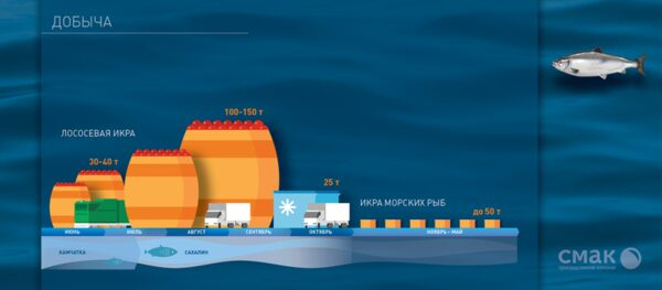 Компания располагает производственными и складскими мощностями на Сахалине, в зоне промысла, и производственно-логистической базой в Новосибирске. Совокупный годовой объем добычи и закупа икры лососёвых пород по состоянию на 2014 год превысил 150 т., а объем выручки достиг 330 млн руб.