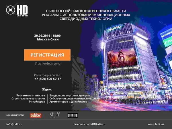 30 сентября в бизнес-центре Москва-Сити пройдет Общероссийская конференция в области рекламы с использованием инновационных светодиодных технологий .