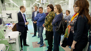 На участке производства высокотехнологичной медицинской продукции предприятия гости осмотрели новые образцы техники – первый российский переносной инкубатор «Бонни», запуск которого в серийное производство запланирован на конец 2017 года, а также инкубаторы, аппарат ингаляционной анестезии МАИА-01 и другие разработки. Медицинское оборудование производства УОМЗ сегодня поставляется во все регионы РФ и более чем в 80 стран мира.