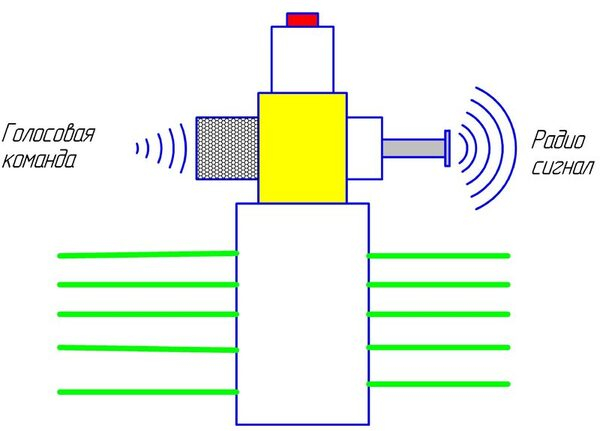 Устройство представляет собой отдельный элемент, объединяющий в себе систему для приема радиосигнала, кнопку, а также приемник голосовых команд. Кроме того, блокиратор может включать в себя системы автономного мониторинга для определения неправомерных действий робота и отключать его самостоятельно, что может быть актуально в том случае, если, например, робот начал двигаться в сторону ребенка и представляет для него опасность, а взрослого человека, который мог бы отключить робота рядом нет.