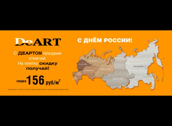 Компания DeART в период с 11 июня по 2 июля 2019 года дарит скидку 156 рублей/кв.м. на 8 артикулов из разных коллекций. Акция актуальна для всех регионов России.