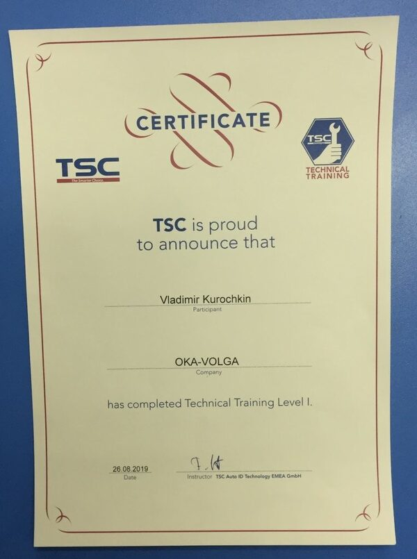 ООО «ОКА-ВОЛГА» получила статус авторизованного сервисного партнера компании «TSC Auto ID Technology Co., Ltd. (TSC)». Организация является одной из 5 ведущих производителей принтеров для печати шрихкодов. Широкий ассортимент решений: от настольного устройства до мобильного принтера для маркировки, работающего 24/7. Теперь специалисты «ОКА-ВОЛГА» выполняют гарантийное и постгарантийное обслуживание оборудования бренда TSC. Сотрудники имеют высокую квалификацию и большой опыт работы.