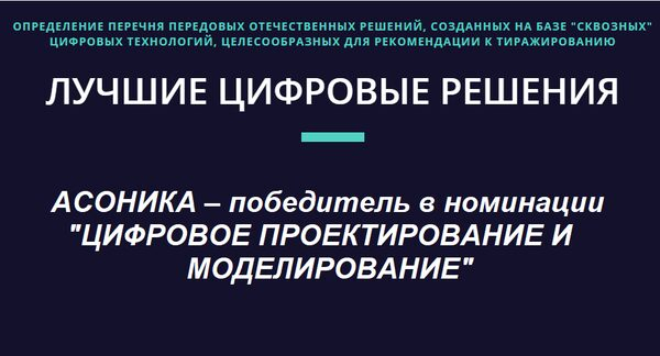 В номинации «ЦИФРОВОЕ ПРОЕКТИРОВАНИЕ И МОДЕЛИРОВАНИЕ» победителем признана Автоматизированная система обеспечения надёжности и качества аппаратуры АСОНИКА