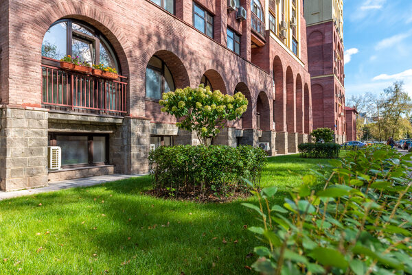 Насладитесь изысканным ландшафтным дизайном и богатой коллекцией растений, прогуливаясь по собственному двору-парку: экзотическими рододендронами, нежными гортензиями, вечнозелеными туями, изящными петуниями в стильных вазонах, яркими осенними красками девичьего винограда, изумрудными газонами с красивыми античными статуями и ротондами на территории МФК «Маршал».