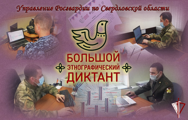 Военнослужащие и сотрудники Управления Росгвардии по Свердловской области присоединились к VI Международной просветительской акции «Большой этнографический диктант», которая проходит с 3 по 7 ноября в формате онлайн. Мероприятие проходит под лозунгом: «Народов много — страна одна» и направлено на привлечение внимания общественности к вопросам межнационального мира и согласия.