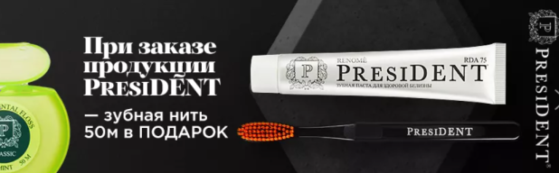 Онлайн-магазин «Ирригатор.ру» запускает новую акцию с маркой «Президент». До 5 декабря 2021 года при покупке любого товара бренда каждый клиент получает зубную нить «Президент» в подарок.
