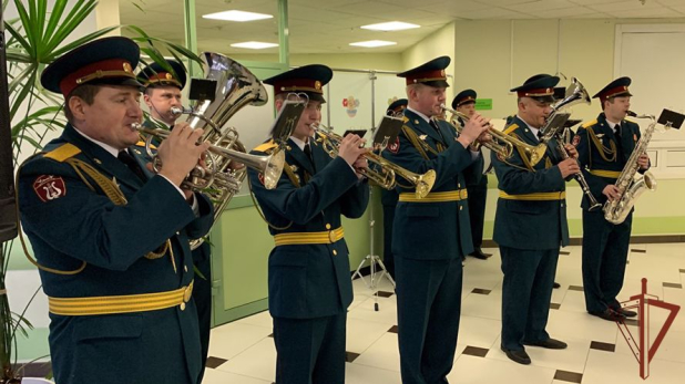В канун Дня матери сотрудники Управления Росгвардии по Свердловской области и музыканты военного оркестра калиновского соединения Уральского округа войск национальной гвардии провели праздничный концерт в перинатальном центре Областной детской клинической больницы.