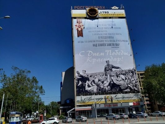 В Краснодаре решили заменить баннер на центральной улицеПеред самым празднованием главного праздника в Российской Федерации, на центральной площади Краснодара решили заменить баннер. Печать баннеров осуществлялась сотрудн ...