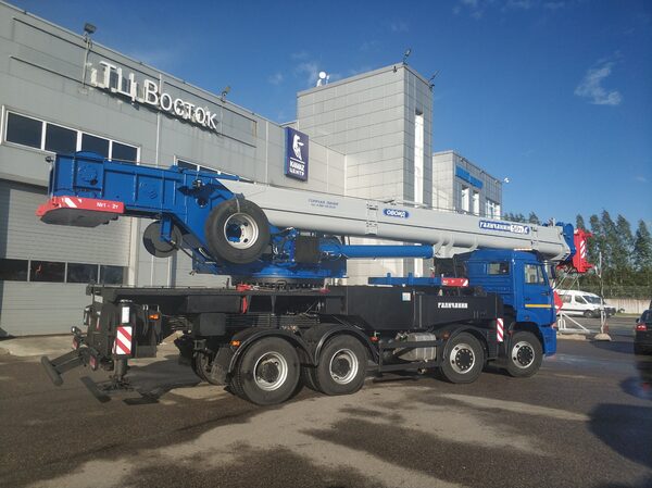 «Галичанин» на шасси КАМАЗ 65201 (8х4)Самый мощный автомобильный кран «Галичанин» на шасси КАМАЗ 65201 (8х4). Грузоподъемность 50 т. Гигант прошел углубленную предпродажную подготовку, получил дополнител ...