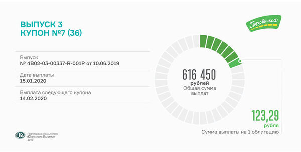 Сегодня состоится выплата 7-го купона по третьему выпуску «ГрузовичкоФ»Седьмой купонный период завершится 15 января выплатой дохода по эмиссионным ценным бумагам «ГрузовичкоФ-Центр». Условиями выпуска биржевых облигаций ус ...