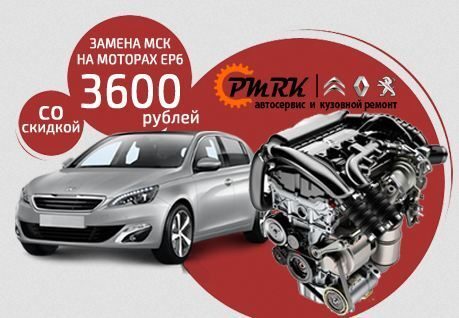 Акция на замену маслосъемных колпачков на ДВС серии EP6 в компании «Поморка Франц»Автотехцентр «Поморка Франц», занимающийся ремонтом и техническим обслуживанием французских марок автомобилей, предоставляет скидку в размере 3 600 рублей на услугу ...