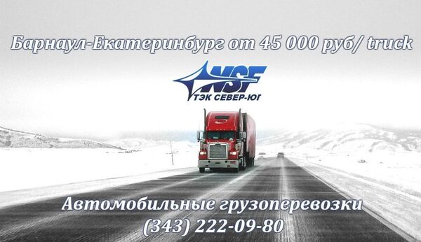 ТЭК Север – Юг доставит Ваш груз из Барнаула в Екатеринбург автомобильным транспортомПеревозка груза в зимний период на автомобиле на расстояние 2 000 км - легко преодолима с ТЭК «Север-Юг». Груз из Барнаула до Екатеринбурга будет доставлен в течение ...