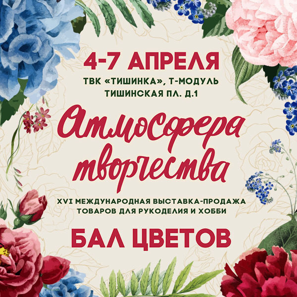 Встречайте весну с «Атмосферой творчества»!XVI Международная выставка-ярмарка «Атмосфера творчества» распахнет свои двери в ТВК «Тишинка» в самый разгар весны – с 4 по 7 апреля 2019 года, а потому посетителей ...