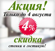 Стенки в гостиную со скидкойВ интернет-магазине «Мечта-Мебель» проходит акция. До 4 августа у Вас есть возможность приобрести стенку в гостиную со скидкой 4%. Широкий ассортимент моделей различ ...
