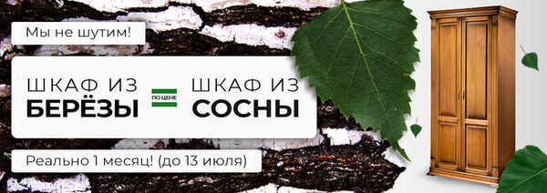 Шкаф из березы = Шкаф из сосныНовая акция проходит в компании «Эко-Массив». До 13 июля у Вас есть возможность приобрести шкаф из березы по цене шкафа из сосны. Успейте воспользоваться выгодным пр ...