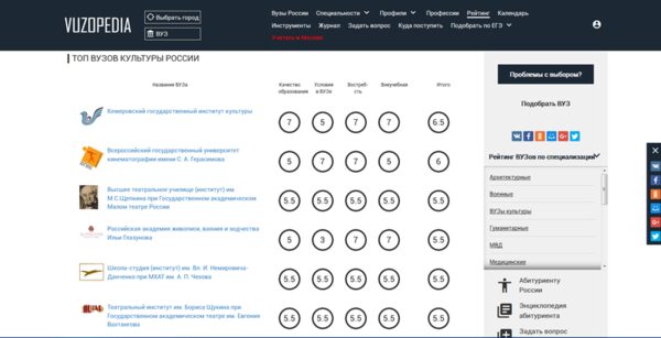 КемГИК – номер 1 в рейтинге вузов культуры 2018Интернет-портал Vuzopedia опубликовал результаты рейтинга вузов культуры 2018 года. Основными критериями при составлении рейтинга являются: качество обучения, внеуч ...