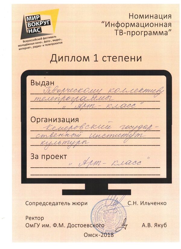 Участники ТВ-студии КемГИК – победители V Всероссийского фестиваля молодёжных кино-, фото-, видео-, интернет-, радио- и телепроектов «Мир вокруг нас»19 мая 2018 года завершился V Всероссийский фестиваль молодёжных кино-, фото-, видео-, интернет-, радио- и телепроектов «Мир вокруг нас». На фестивале были ...