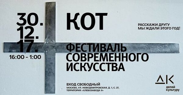 Фестиваль современного искусства «КОТ» в МосквеФестиваль современного искусства «КОТ» объединит более 50 молодых художников, выпускников и студентов ведущих арт-школ страны. Формат фестиваля экспериментальный – э ...
