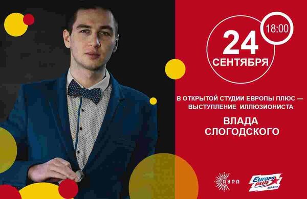 Фокусы и иллюзии в Открытой студии Европы плюс в ТРЦ «АУРА»24 сентября в 18-00 ТРЦ «АУРА» приглашает всех желающих познакомиться с мастерством новосибирского иллюзиониста и фокусника Влада Слогодского. Влад Сологодский - п ...