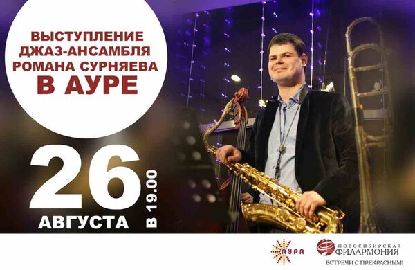 Вечер музыки в АУРЕ: джаз-ансамбль Романа Сурняева26 августа ТРЦ «АУРА» приглашает всех любителей музыки на выступление джаз-ансамбля Романа Сурняева. В составе коллектива - музыканты Новосибирской филармонии: Роман ...