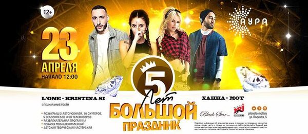 ТРЦ «АУРА» отмечает день рождения: грандиозный праздник вместе со звездами Black StarСобытие невероятного масштаба ждет жителей Новосибирска этой весной. 23 апреля ТРЦ «АУРА» отметит свой пятый день рождения в компании звезд Black Star! Ханна, Krist ...