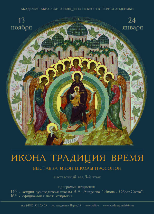 В Академии акварели и изящных искусств откроется выставка «Икона. Традиция. Время»13 ноября в Академии акварели и изящных искусств пройдет торжественное открытие выставки икон школы иконологии и иконографии «Просопон» - «Икона. Традиция. Время». В ...
