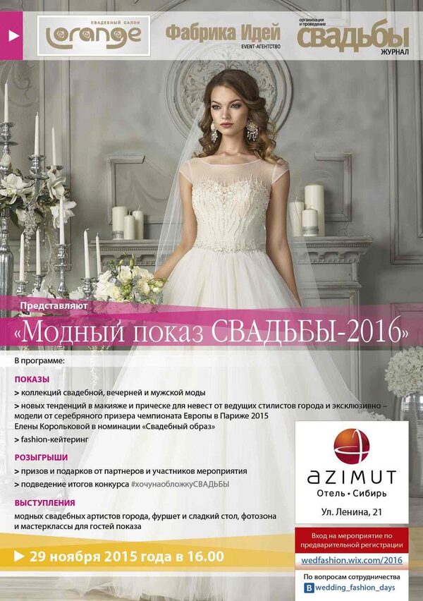 Приглашаем на «Модный показ СВАДЬБЫ-2016»!Приглашаем будущих молодоженов, и всех, кто интересуется модой, стилем и свадебными новинками на первое ежегодное fashion-событие свадебной индустрии города - «Модны ...