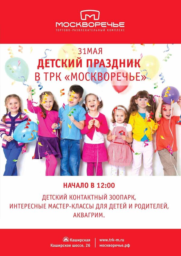 31 мая в ТРК «Москворечье» пройдет детский праздникВ канун Международного дня защиты детей 31 мая в ТРК «Москворечье» пройдет веселый детский праздник. Начало в 12.00, вход свободный. В программе мероприятия увле ...