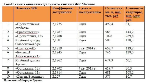«Метриум Групп»: Топ-10 самых «интеллектуальных» элитных ЖКНакануне начала нового учебного года аналитики компании «Метриум Групп» подготовили рейтинг элитных жилых новостроек Москвы по степени удаленности от ведущих ВУЗов с ...