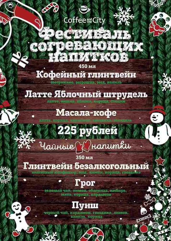 Фестиваль согревающих напитков в Coffee and the CityСовсем скоро в город войдет сказка: обнимет пушистым снежным одеялом, засверкает новогодними огоньками, и мы все затаим дыхание в ожидании чуда. Кофейня Coffee an ...