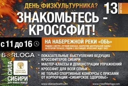 Открытая тренировка и соревнования CrossFit на Дне физкультурникаОткрытая тренировка и соревнования CrossFit на Дне физкультурника 13 августа - День физкультурника! Знакомьтесь с кроссфитом! C 11 до 16 часов на набережной ...