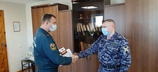 На Среднем Урале сотрудника Росгвардии наградили медалью МЧС России «За отличие в ликвидации последствий чрезвычайной ситуацииВ городе Нижние Серги Свердловской области сотрудники МЧС наградили ведомственной медалью старшего полицейского территориального отдела вневедомственной охраны Конст ...