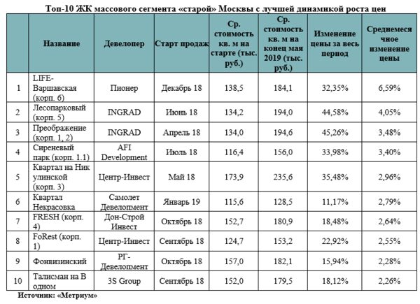 «Метриум»: ЖК массового сегмента «старой» Москвы с лучшей динамикой роста ценПо итогам мая 2019 года средняя стоимость квадратного метра в новостройках массового сегмента «старой» Москвы составила 166,1 тыс. рублей. С начала года этот показат ...