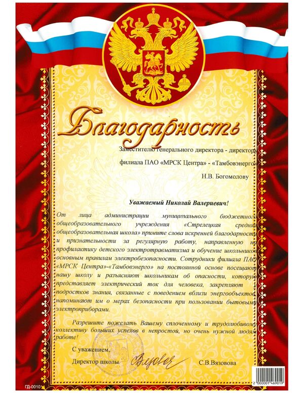 Тамбовэнерго поблагодарили за обучение школьников основным правилам электробезопасностиВ адрес заместителя генерального директора «Россети Центр»- директора филиала «Тамбовэнерго» Николая Богомолова поступила благодарность от администрации Стрелецкой с ...